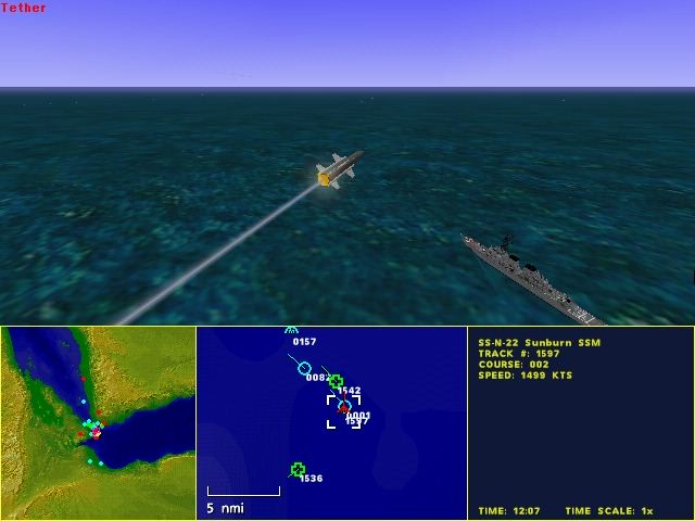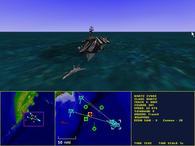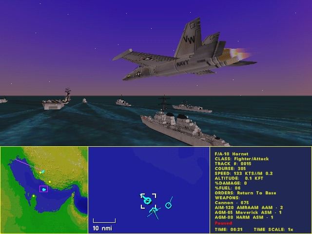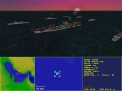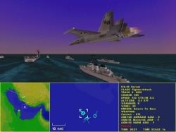 How is intel transmitted to the player? Are there AWACS calls? Ed: Yes, you'll launch your surveillance aircraft and helicopters from your ships. You would be wise to protect vital assets like AWACS since they are your eyes in the sky. Of course, you'll also get reports from your other airborn assets. How are we notified of an incoming force? Ed: Your surveillance systems are data linked so your tactical map stays current. And if your F14s run across an incoming enemy that wasn't on your map you'll get a radio call. Once spotted the incoming force will also appear on your tactical map.