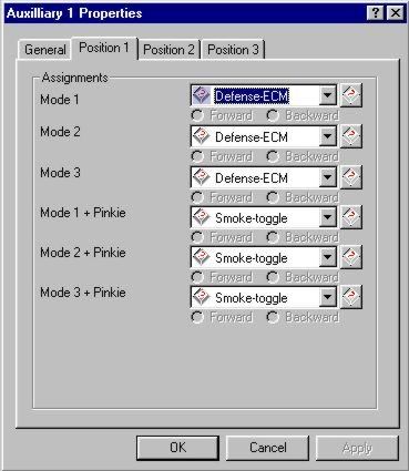 The three-way AUX switch is like having three extra buttons but you are only allowed to use two out of three in any mode. Like a rotary or hat switch it is critically important that you leave one position of the three-way switch "blank" with "No Command" selected.