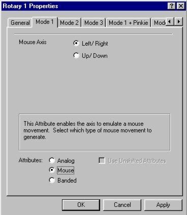 The Mouse mode maps the rotaries as the X and Y axis of your mouse. I have tried this mode in clickable cockpits like DI's Super Hornet, Falcon 4.0, and Jane's F/A-18E. It works as advertised but frankly the mouse hat in combination with the mouse button on the throttle is much easier to use that trying to scroll the two rotaries. However, if all 18 modes on your four hats are occupied with other commands then try this as a mouse control that keeps your hands on the HOTAS.