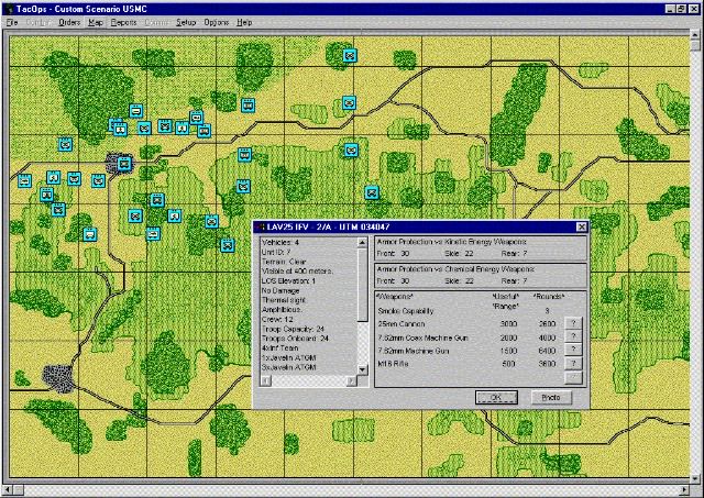 ![]() Unit Database entry on the LAV-25, a contender for the primary infantry carrier for the US Army's new "Medium Brigades." Something Old, Something New If you are an old player looking for major new changes in TACOPS, you will be somewhat disappointed. While the game is remarkably stable with few bugs, there are only minor improvements including: