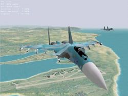 Ed Reddy's Take on Flanker 2's Features: Flanker 2 almost had the same effect for me when I took off down the runway, except I didn't feel any wind and my eyes were clear as a bell. The aircraft I commanded wobbled a bit from the thrust and as I slowly pulled back on my control stick the Su-33 slowly climbed into the air. I took in the landing gear and climbed to 3000 meters. The terrain looked amazing as it quickly slipped under the belly of my plane. Buildings appeared as I flew over the Crimean city of Sevastopol with amazing ground detail. What a ride! When Su-27 Flanker V1.0 was released a few years back, I thought this simulator was the cat's meow. In the business world, one mantra for success is "location location location". In the flight sim world, the mantra is "detail detail detail." Detailed graphics, detailed flight model, detailed artificial intelligence, detailed modeled SAM and Ships, and detailed weapons. My opinion is that Flanker scored a perfect 10 in all categories, except for graphics, but we can live with a perfect sim without eye candy. As they say "Eye candy is dandy, but being real is the deal". It was not an easy simulator to fly, a number of so-called hardcore pilots gave up on this gem because they could not master the avionics. Well Chuck Yeager once said 'It's the man, not the machine" and the same applies to Su-Flanker. Flanker 1.5 (in its latest form) offers realistic weapons model performance. Expect that S300 to track your bird as accurately as it does in real life. But for those who are disheartened by the difficult flight model from the original version - rejoice. Flanker 2 will have scalable difficulty levels. This means all simulator pilots, at all skill levels, will be able to taste the Flanker experience that for so long was relegated to only the most hardcore fliers. So, what are the changes for Flanker 2 over the current version?