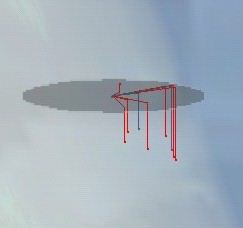 I've had a number of questions regarding the HUD radar overlay which you see in the screen shots at top left. This display is configurable via the preferences menu to give you either a "perfect" god's eye view around you, or a more realistic display. This threat indicator shows the position of other aircraft relative to yours, with the vertical lines showing the pitch position and the more or less horizontal lines within the smoked disk showing the relative yaw position. Red are enemy, blue are friendly.
