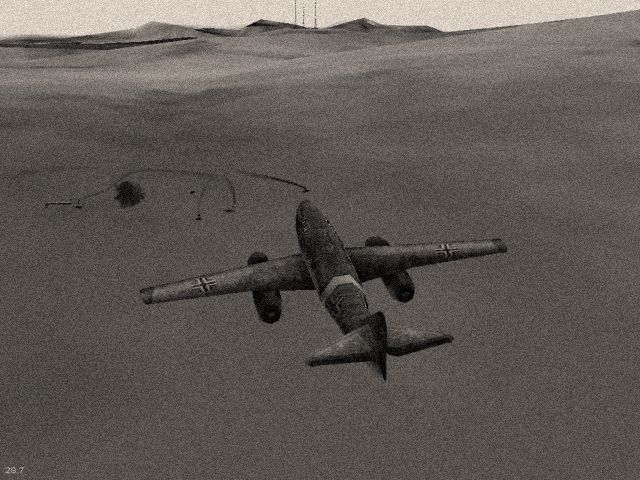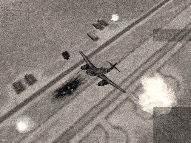 Fig. 1. Bombing an Allied airfieldThe Allied forces expected such an attack and were well prepared. The Axis were somewhat surprised by the resistance, and their attack on the Allied premises was not as successful as hoped for, although they did suffer only minimal losses. They do need to be thankful to their superior so called 'jet' plane technology for this, as their incredibly fast Me-262 fighters kept them on a safe distance from the much slower Spitfires, and enabled the Axis to attack them by what some of the observers would describe as the Axis planes 'booming' onto the Allied pilots and then 'zooming' away. We do believe that this tactics will find a more appropriate description in the near future.