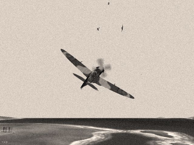 Fig. 8. A Spitfire strafingWith the fighting ceased for the day, it became obvious that the Axis forces made a significant advance in the war. Yet, one cannot ignore the fact that the Axis side started the war without sparing any expenses. The Allies can only hope that their forces will last long enough for the Axis side to expend their resources. If this should happen, the Allies are expected to start a major counteroffensive, and the course of war could change dramatically.