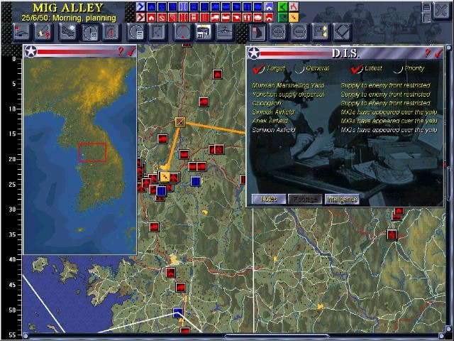 The mini-campaigns cover such moments as North Korean's initial shock invasion of the South, the UN's desperate defence at the Pusan perimeter until the Inchon landing, the Chinese Intervention and UN retreat from North Korea, and the appearance of MiGs in MiG Alley. 1951 sees the beginning of the "Spring Offensive," the main Campaign that covers the period from January to July when the Reds are preparing for their big offensive. At this stage UN ground forces have stabilised a front line and the war could go either way. During this campaign, the player takes on the role of Supreme Air Commander and must manage the entire UN effort in support of the ground forces. This covers the whole country and every aspect of warfare. By 1952 the war turned into a bloody stalemate with both sides trying to gain advantageous positions before the end of the peace talks. During this period, the player is given the chance to fly special missions like an attack on a Hydro-Electric dam.