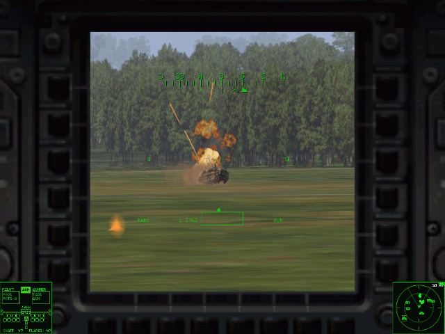 Gunship! has a number of interesting features that really impressed us. The Arena defense system is modeled on some Russian units, and you can actually see the tanks shrug off a hellfire hit when this system works. Even though the subtitles in the order bar are always in the language of the machine that Gunship! is installed on, there is an option to have each country's crewmembers speak in their native language.