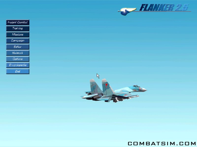 Fig. 3. Flanker 2.5 Main MenuCarl Norman looks across the table in a small, secluded cubicle behind the Mattel display hall. It's late in the second day of the E3 show, and Carl is obviously tired. As Director of Product Development, Novato Studios, he has had a long day of dealing with journalists and retailers. When the subject turns to flight sims, however, the enthusiasm burns through his fatigue. "We made Flanker 2.0 as something we wanted to play," he says, "and I think we hit it right on. But it's still a work in progress. Flanker 2.0 was never meant to be a dead end - it's still evolving."