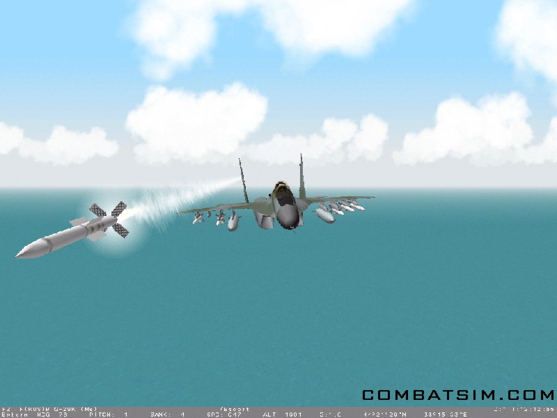 Another excuse that Carl and I may use to soothe our failure-induced ego contusions is the fact that the aircraft carrier was moving. Yes, Flanker Faithful, it is possible in 2.5 to set waypoints for your naval task forces. Not only that, but the ships engage enemy naval units in spectacular anti-ship missile to anti-missile missile brawls that are awesome to behold. Setting up a task force to task force melee is a piece of cake in the Mission Editor, and what a show it makes! Flying in from a distance, missile plumes arc skyward and swoop down to skim at wave top level while targeted ships wildly maneuver and deploy countermeasures. Sometimes, it's fun to set the fighter on autopilot and just sit back and appreciate the fireworks - pretty amazing stuff. The people at Eagle Dynamics are true simulation craftsmen.