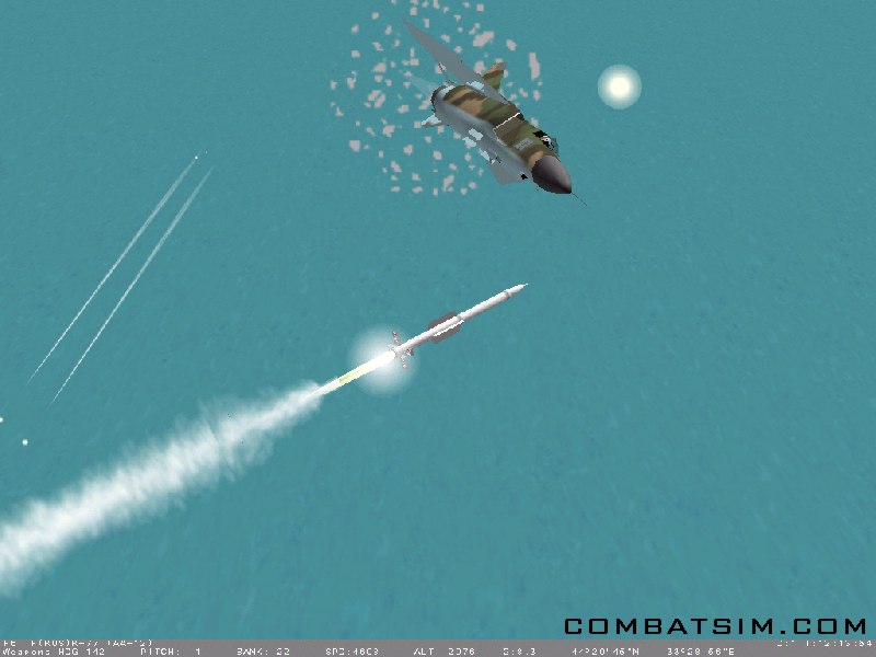 Fig. 9. R-77 vs. Mig-23Flanker: AttackSSI plans to offer current registered owners of Flanker 2.0X the upgrade to v2.5 at a discount via the Internet. Current plans include, in a move similar to the Squadron Leader Edition of Flanker 1.X, Flanker 2.5 being repackaged and sold on retail shelves (at full price, natch), replacing any remaining stock of 2.0.