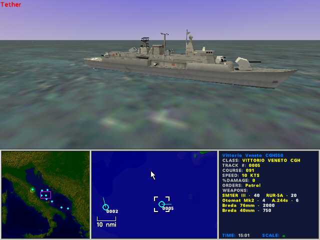 Fig. 3. The new Italian Vittorio Veneto Class CGHSome of the changes include sensors that are no longer restricted to unrealistic generic values, ships that now carry the appropriate type and kind of weapons and weapons that behave realistically. I wasn't able to verify that every item has been updated, but certainly every item I looked at had been extensively modified. In some cases the modifications appear to involve little more than giving weapons their correct titles, but in most cases the changes go far beyond this. Ranges, arcs of operation and effectiveness of many items has been extensively tweaked. Some entirely new features have also been added, such as ASROC and SUBROC type weapons, hybrid CIWS mounts (SAMS and guns combined), shore based artillery and iron bombs and rocket pods for aircraft. It is also noticeable that aircraft radars now operate in a more realistic 60 degree forward arc and that all gun firing routines have been recalibrated and retimed for their firing sequences during air defence routines.