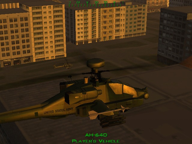 ![]() Gunship Apache: City Q: How much detail will go into object animation? Will we see turrets moving, guns elevating, rocket flares, tracer fire, men popping out of hatches? Tim: Yes and more. The team has completely revised all of our effects and animations. For example, the crewmen's heads move as they search for targets, and the weapons move with them. Turrets sweep back and forth as they search for targets. We have a particle system for explosions and fire. Tracers actually ricochet off armored vehicles. The list goes on. Q: This past year weather effects have evolved in a big way. How will Gunship follow on these advances and how will weather affect tactics? Tim: We will have a lot of weather effects. The biggest effects on tactics are visibility and weapons interactions. Both visible light and thermal are effected by times of day and weather. Some weapons systems do not work as well in bad weather. We try to incorporate a number of effects. Q: Sound modeling is another area of great advance. What sound APIs will be supported and how will this impact game play? Tim: We are still finalizing this part of the game. I don't have an answer yet. Q: Low level flight means that terrain is critical. What is the terrain resolution and what kinds of terrain will we see? Tim: All of our campaigns are set in Eastern Europe. This gives us a range of terrain from relatively flat forest and lake areas to deep river valleys and mountain passes. We include tactically useful trees, buildings and hills. There are very few large open spaces. Even farmland has scattered trees and buildings. Go to Part IV