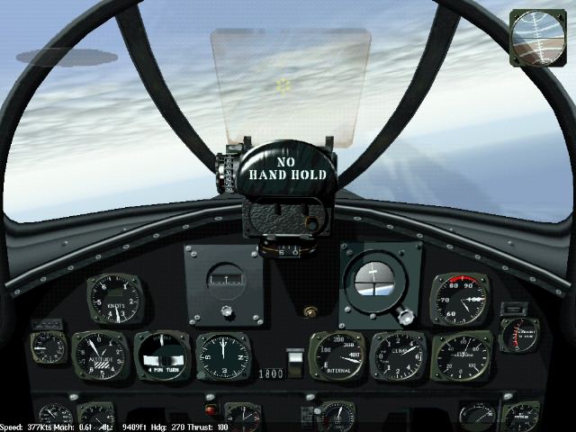 ![]() F80 Cockpit AI in MiG varies across five skill levels. If you encounter a flight of four MiGs you may have a highly skilled opponent flying LEAD and three newbies for the remainder. I have even seen an opponent panic and eject as tracers went arcing by his aircraft! Your wingmen will support you in a fight. They don't call for help unless they need it, and when you are outnumbered, they will need it. You can use ALT F2 to view the flight you are escorting, and F5 will show you the sender of the last message.