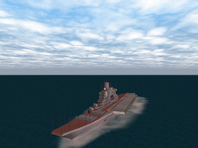 ![]() Goroshov carrier from Harpoon4 The 3d interface will be reminiscent of TAW, but with the ability to bring up multiple windows. I asked Dave Bringhurst at Ultimation about the possibility of dual monitor support so that one could keep the 3d window in a full screen while accessing control windows on a separate display. Dave would like to include such a feature, but it will depend on the production schedule. Flanker 2 and the Digital Combat Series: Su 39 Take Flanker 2. Stir in one ground war. Add a large clump of Su39s (the navalized version of the Su25). Now bake a stand alone simulation that is connectable to the Flanker 2 world. Voila! You have Su39, slated for release late in 2000. The goal is to expand the Flanker 2 world and increase the gameplay and the fun. The new game would include enhanced tactical and command options, granting the player greater control over his wingman and flight. Enhanced communications might also include AWACS and Forward Air Controllers. But there is lots more to tell on Su39, and you'll have to wait until after the weekend. Join a discussion forum on this article by clicking HERE.