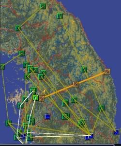![]() Figure 3 In the shot above you can see that one of the cool features of a windowed planner is the ability to display a lot of information at the same time. So, you can select each of your planned missions in turn and bring up the mission info which shows each flight on the planned package. No, you can't click a button that says "SHOW ME ALL PACKAGE INFO," but you can bring these up one at a time for collective display. In the same way you can bring select ALL ROUTES as a map filter from the four clustered icons at the right side of the map icons. If you click on Figure 3 above you will see the larger image which shows all the routes for the missions I planned.