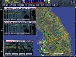 The previous page showed you my selection of targets for the first set of missions. Yeh, I work my boys pretty hard, but they get the job done! One of the very cool features of MiG Alley is that not only do you get to design this set of missions, you can then fly any one you choose, in one of five aircraft! While there have been some complaints that the flight modeling doesn't vary as much as one might expect between, say, the F84 and F100, there are some differences and certainly the basic characteristics are there.