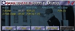 ![]() I chose four targets that were listed as HIGH activity and HIGH or VERY HIGH capacity. Two of these targets were a half hour or less from my base, and the other two were still much closer than the Yalu Road Bridge. Three were supply dumps and one a choke point. ![]() ![]() Profile Info Box Clicking on the Profile Button in the Mission Folder box brings up the Profile Info Box. Clicking on TASK at the bottom of the Profile Info box brings up the ROUTE box. Where the Mission Folder box allows you to delete an entire mission, the Profile Info box allows you to interact with individual missions. Clicking in the box on any one of the yellow flight info sections (like F84 under Air Cover) is a quick shortcut to Tasking and allows you to manipulate flight parameters. From here you can click on TASK to get down and dirty and add and delete waypoints or manipulate the route itself. I didn't particularly like the route to Munsan Marshalling Yard and decided it needed some work. The original route brought me back over numerous enemy air fields. I decided my B29s didn't need the aggravation. Go to Part III