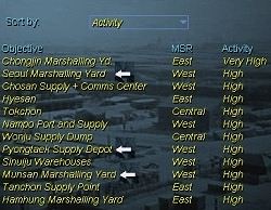 ![]() Figure 4 Now notice Figure 4 above. Instead of the usual sorting by area, you can also choose to sort by ACTIVITY or CAPACITY from the drop down list. This will save you considerable fussing about, though it would be nice if the program would remember your choice of sort settings. No matter, get on with it, we have a war to win. |