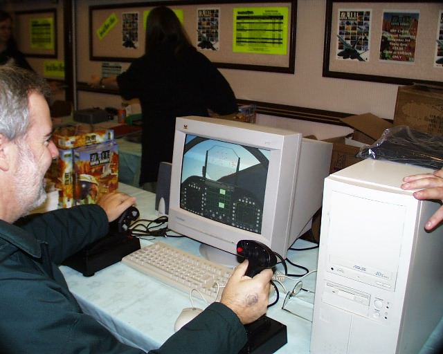 Learning Company in Europe, manning the booth. Jim loves flight sims as
