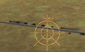 With this one we're coming more head-on. But we also have a chance to hit more than just one target. With rocket convergence I should be able to get so close that the starboard (right side) rocket will hit the tank, while the port (left side) rocket flies into the group of trucks.