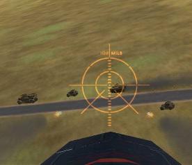 Start with the closest car or truck to you. Judging distances at first can be difficult, but with practice you'll just get to know what feels "right". Now roll over slightly and gently pull the stick up. This way you'll be able to hit a few from side-on rather than just the one target. Alternatively, use your rudder to go from left to right at multiple targets.