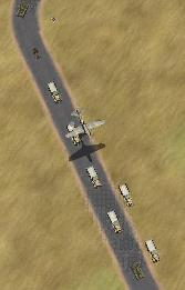 Coming in from their 5-, 6-, or 7-o'clock: Probably the easiest and best way to strafe. Sight the column, start firing towards the middle, dip the nose down to get to the guys at the end and then pull up slightly to strafe back upwards, trying to hit them all. The trucks and cars should go up easy thus causing maximum damage.