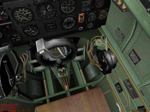 The model is slightly different in perspective and lacks some of the textures the IL-2 Sturmovik series models do, relying instead more on the lighting effects, notice in particular the canopy bracing. It thought they could have done a bit better here. However, the hydraulic lines are modeled much smoother and actually look like pipes where they are shown. The Maddox version is a bit too low on the polygon count in this one area to look like tubing. If you are a CFS3 flyer and not interested in IL-2 series titles, this is a way to update your CFS3 cockpit to look as good as the IL-2 FB AEP fliers enjoy. Compare that to the stock CFS3 cockpit and you will see a bit of improvement over the original. You gain historical accuracy and some detail over the Microsoft version.