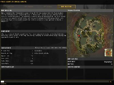 I spent a couple of days playing the single player maps that the game ships with to kind of get the hang of how everything works. After playing the “Why cant I get the patch to install?” game. I finally got a chance to play online. I wasn't impressed. To be honest I really didn't like BF2 very much overall. It just seems to me that the developers could have had an amazing game but just left it at ok. The AI while passable are mostly idiots who are either Rambo or Gomer Pile. They can sometimes be coerced into following your orders in command mode. Even with clear commands they tend to run around like lunatics jumping into vehicles and just driving or flying around randomly or charging enemy fortifications only to be mowed down by machine gun fire. Online, where this game has a chance to shine, I found it to be little better. I honestly would rather play with the idiot AI on my team than most of the players I ran into. Online play tends to be a free for all with people running in all directions and no one really working together. You can attempt to take control of the situation in a couple of ways either as the overall commander or a squad leader. As the commander you can direct the units, call in artillery support, set up supply drops and provide UAV support using rather well setup commander map. One of the nice features of this is if you are a gung ho multi-tasker you can also grab some gear and head out on foot yourself to lead from the front. The player has a comm setup that allows the commander or the squad leader to call in support by simply selecting your options from the list without going through to commanders map.