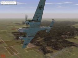 No matter, at 1024x768 EAW is indeed impressive! I could swear that another cloud layer has been added, I don't recall flying between layers previously. At 950 meters in high resolution you can tell that your target is a bomber, and the jaggies are greatly reduced on cockpit and external views. You can crank beyond 1024 if you have the hardware. Static cockpits are not available beyond 640x480, but the virtual views work great! And I KNOW you have been dying for some 1024x768 EAW wallpaper. Who am I to deny you your rights? ;-D Click any of the following shots for a high resolution image. |